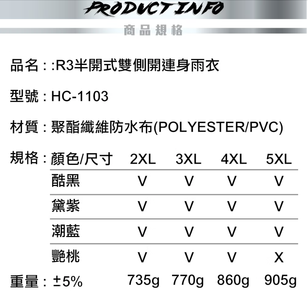 R3半開式雙側開連身雨衣